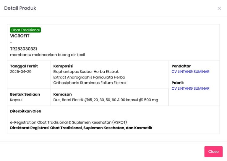 Belum tersedia di apotek umum. Vigrofit hanya dijual melalui pemesanan online untuk menjaga kualitas dan orisinalitas produk.